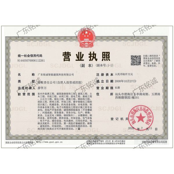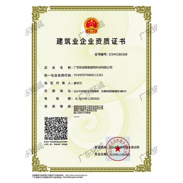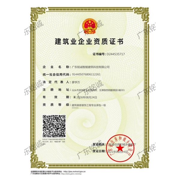廣東銘誠智能建筑科技有限公司成立于2008年,公司注冊資金為6000萬元,集辦公裝修、酒店裝修、家庭裝修、軟裝裝飾、娛樂場所裝修為一體的裝飾公司,率先提出“創(chuàng)造現(xiàn)代人文空間,挑戰(zhàn)業(yè)界高峰”的雄壯口號,并以此為目標(biāo),完成了一大批具有影響力的大型公裝工程:其中包括廣州國際中醫(yī)藥展貿(mào)中心、奧飛澄海音樂廳、澄海區(qū)國家稅務(wù)局、澄海興信小額貸款、澄海潮商村鎮(zhèn)銀行、汕頭龍湖賓館、澄海豪庭大酒店、御園國際飲食城、澄海福晉軒酒家、享樂匯保健有限公司、假日商務(wù)酒店、尚景康園物業(yè)、星輝車模股份有限公司、奧飛動漫有限公司、香港國際玩具、汕頭萬基貿(mào)易有限公司、泰興源實業(yè)有限公司、汕頭皇冠玩具有限公司等;家裝工程包括南澳黃金海岸整幢的精裝房、中信華府、富春華庭、金信鳳凰名城、凱旋花園、中信金城、柏嘉半島、陽光海岸、金葉島等高等住宅。 ? 廣東銘誠智能建筑科技有限公司經(jīng)過十余年的建筑裝飾裝修施工領(lǐng)域項目積淀,于2018年2月取得“建筑裝修裝飾工程專業(yè)承包二級”、“建筑機電安裝工程專業(yè)承包三級”、“建筑工程施工總承包三級”、“施工勞務(wù)不分等級”、“安全生產(chǎn)許可證”等專業(yè)資質(zhì),并于2021年8月建筑裝修資質(zhì)正式升級為“建筑裝修裝飾工程專業(yè)承包一級”。這是對企業(yè)規(guī)模、工程業(yè)績、管理水平、誠信表現(xiàn)的肯定,是企業(yè)實力與能力的展現(xiàn)。 ? 公司每一項工程都始終堅持“精美設(shè)計、精心施工、確保合同承諾;勤奮開拓、追求突出、創(chuàng)造時代精品”的質(zhì)量方針,力爭做一項工程,樹一座豐碑。 ? ?銘誠擁有一支由專業(yè)的營銷精英和客戶顧問組成的營銷隊伍,勤奮、敬業(yè)的每一位銘誠員工將本著“贏在別人休息時”的專業(yè)精神,為客戶提供全程營銷及售后服務(wù),確保客戶的合法利益,提供體貼周到的服務(wù),做到讓顧客滿意。 ? 銘誠擁有一批資老牌室內(nèi)環(huán)境設(shè)計師,以“現(xiàn)代人文空間”為設(shè)計理念,為客戶提供人性化、差異化、智能化的室內(nèi)環(huán)境設(shè)計服務(wù),準(zhǔn)確的將人性化特點與室內(nèi)環(huán)境相融合,達(dá)到了“現(xiàn)代人文空間”的和諧統(tǒng)一。 ? ? ? ?自主創(chuàng)新、視社會責(zé)任為己任的精神使我們在發(fā)展的道路上屢獲殊榮:不斷提升的銘誠品牌知名度和美譽度,靠的是優(yōu)質(zhì)的產(chǎn)品,靠的是不斷提升的營業(yè)績,靠的是國內(nèi)的核心技術(shù)和誠信的服務(wù)。相信通過銘誠人的努力,銘誠將會不斷以新的姿態(tài)為提升廣大消費者的生活質(zhì)量做好服務(wù),為中國裝飾行業(yè)設(shè)計創(chuàng)新做出突出貢獻(xiàn)。 ? ? “忘掉競爭、共